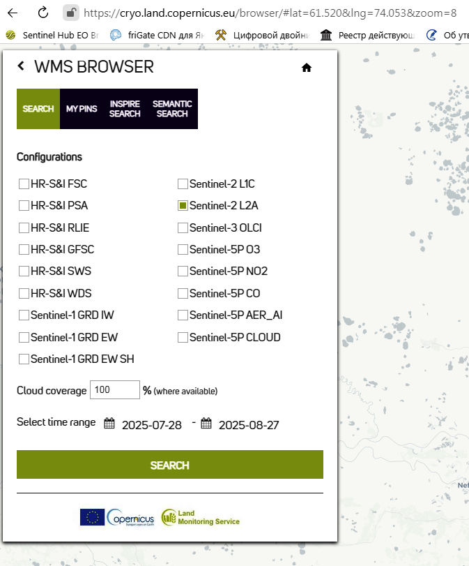 ingener писал(а):Доброго времени суток! Собрал альтернативу Sentinel.HUB - набор тех же композитов, но с сайта https://cryo.land.copernicus.eu/browser