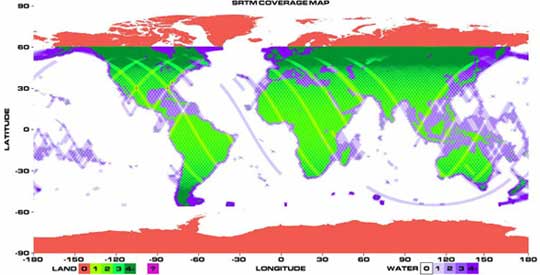 Радарная топографическая съемка большей части территории земного шара, за исключением самых северных (>60), самых южных широт (>54), а также океанов, произведенная за 11 дней в феврале 2000г с помощью специальной радарной системы. Двумя радиолокационными сенсорами SIR-C и X-SAR было собрано более 12 терабайт данных (что примерно равно объему информации библиотеки конгресса).