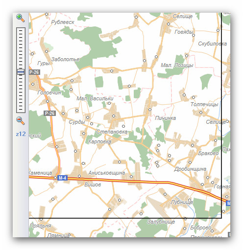 Далее переходим на масштаб 13. Здесь НП Княжицы уже появился.