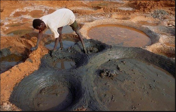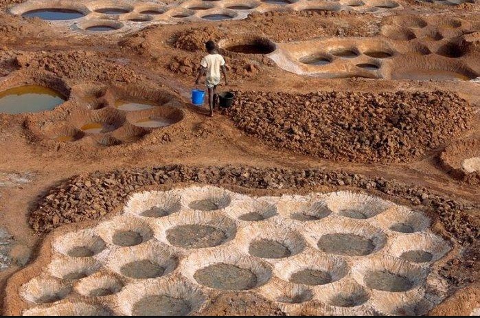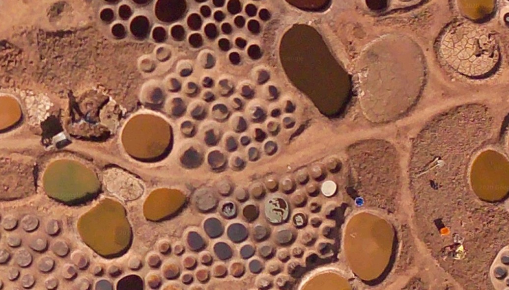 оль извлекается из глины. Здесь организовано несколько прудов с пластовой водой, которая имеет характерный пастельный оттенок. Глину, в которой содержится соль, транспортируют к прудам. Затем ее погружают в сам пруд и превращают пруд в глиняную жижу. После отстаивания глины, соленую воду сливают и фильтруют. Испарившаяся влага оставляет кристаллы соли. А пруды очищают от ненужной глины для поставки новой партии. Цвет прудов зависит от самого цвета глины, солености и уровня осадков во время работы.