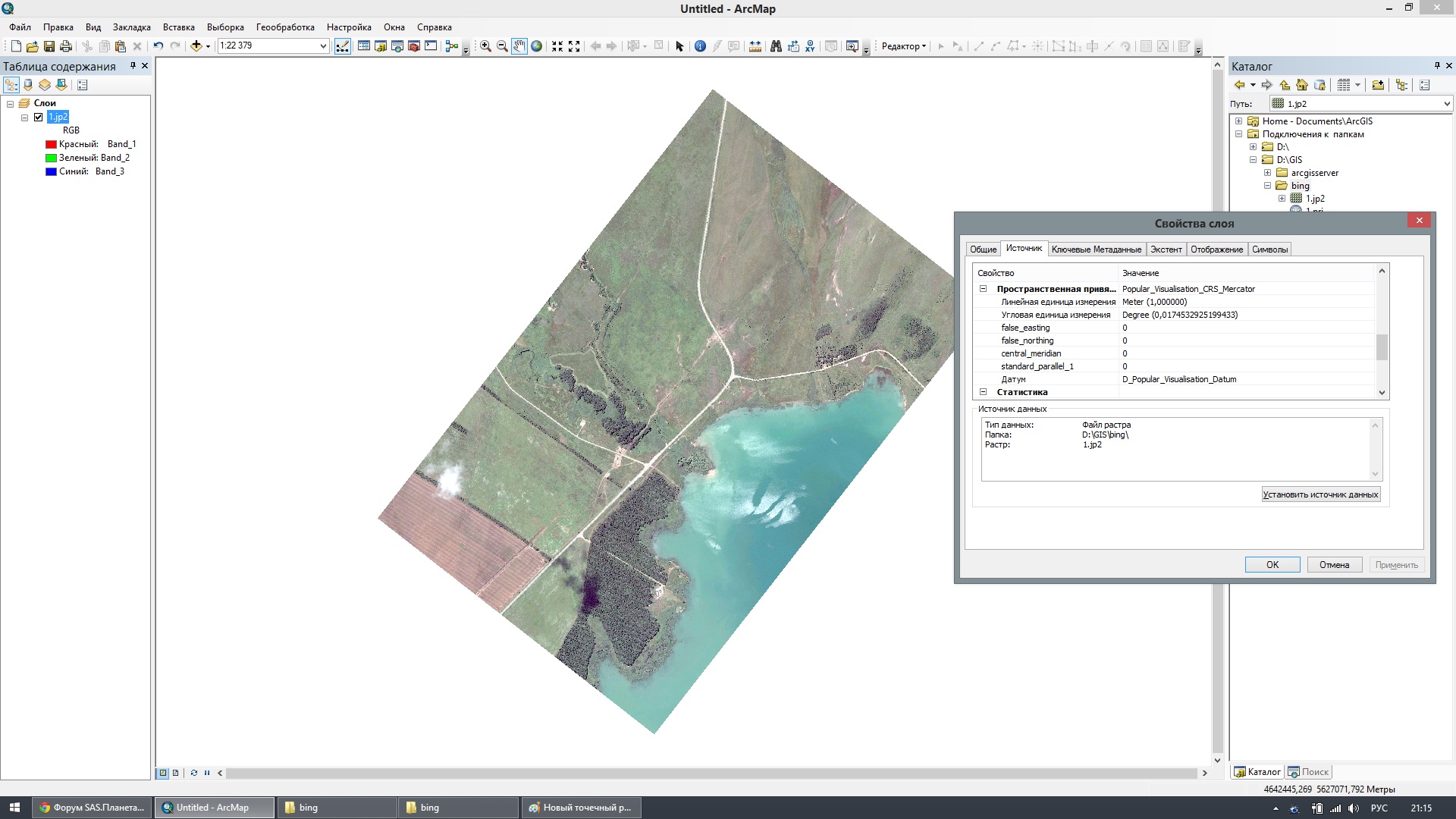 при склейке снимка bing в формате jpeg2000 и последующем открытии в ArcMap 10.1, растр непонятным образом выворачивает.