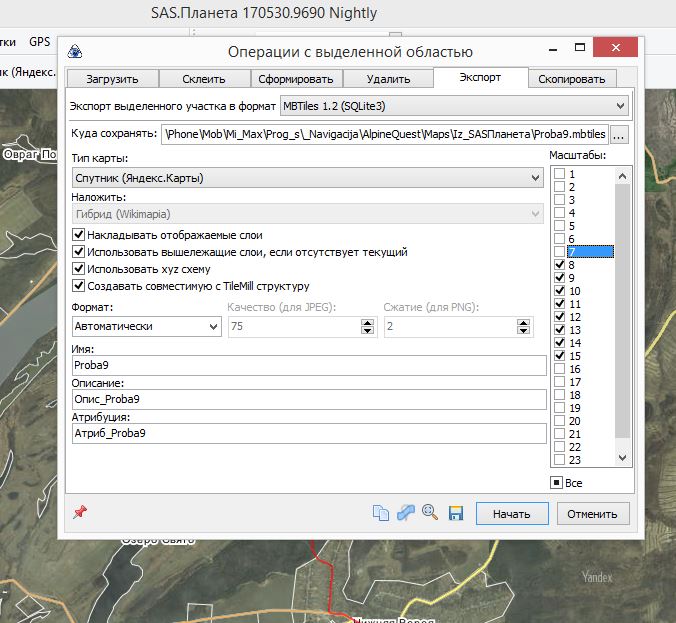 Я был уверен, что галочки возле номеров в поле "Масштабы" указывают программе SAS.Планета, какую информацию надо скачать из интернета для создания файла *.mbtiles. Если я не прав, то подскажите пожалуйста, как нужные тайлы подгрузить в кэш. Раньше при создани карт для OruxMaps (файлы *.db и *.otrk2.xml) этих галочек было достаточно.