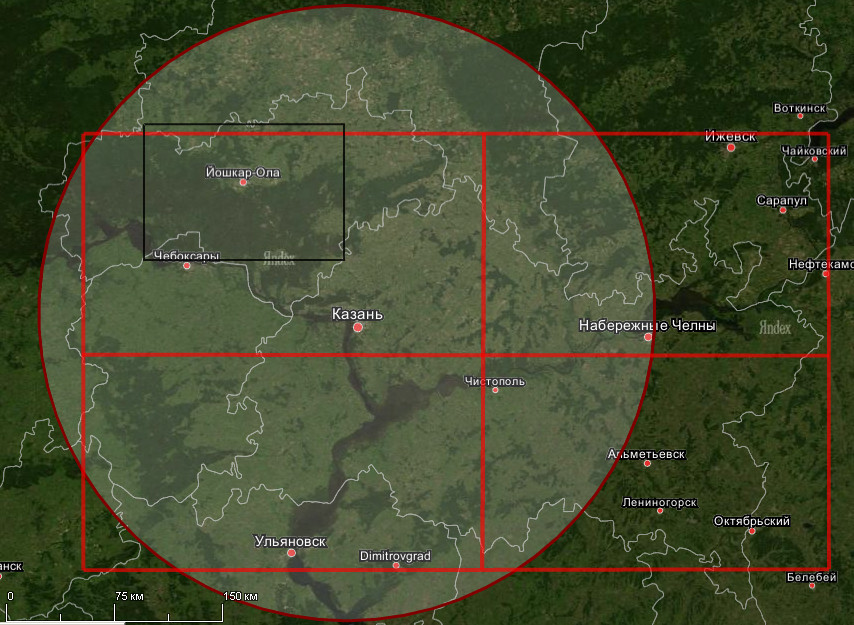 Попробовал сделать карты в img формате, и они мне понравились больше чем в формате jnx. Понравились тем что цветовая коррекция лучше работает, карты чётче видно. Сравнивал на примере генштаба. Но вылезла одна странность, при экспорте ггц и осм площадь выделял прямоугольником. На выходе получился файл где-то 6 Гб из 4 частей. Тайлов где-то было за 400тыс. Затем через функцию "измерить окружность" сделал круглый полигон, и далее через "операцию с выделенной областью" этого полигона сделал экспорт спутника Бинг. Тайлов где-то было за 300тыс., то бишь меньше. Но на выходе получил 9 частей на общую сумму 15гигов. Как это так вышло? Масштабы которые экспортировал одинаковые во всех трех случаях. Скрин площадей прилагаю. Даже на взгляд видно, что по площади круг меньше (прямоугольник большой).