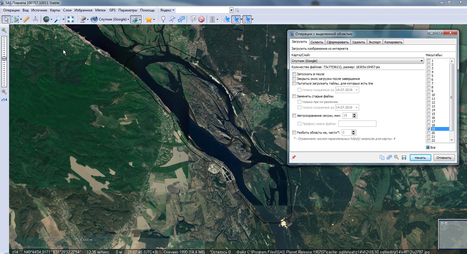 В SAS скачал нужный участок в виде Яндекс Спутника и Navionics Marine Charts в масштабах 18, 20, кажется еще 21. После этого "Склеил" тот же участок (по отдельности каждую карту естественно в свои отдельные папки) в GeoTIFF при масштабе то ли 20 то ли 21, проекция Проекция карты Mercator ... , с применением коррекции изображения, формат BigTIFF, сжатие None, и со всеми файлами привязки.