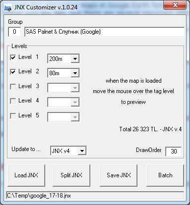 Smith2007 писал(а):JNX файлов может быть не больше 250. Максимальное кол-во тайлов на одном уровне в контейнере не более 50 000.