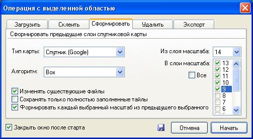3. В области интереса делается Сформирование масштабов 9,10,11,12,13 из 14 масштаба. (Ставим галочки генерить из предыдущего масштаба, заменять существующие).