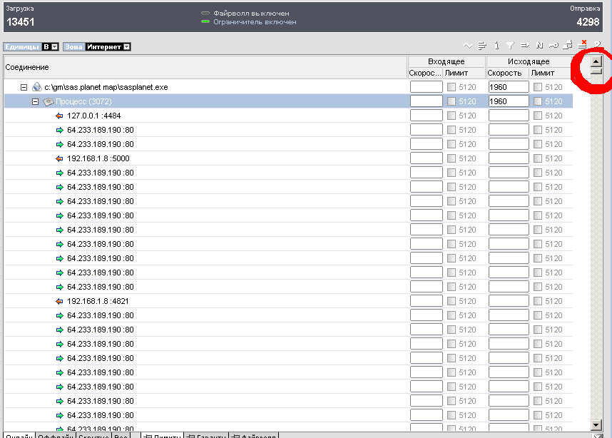 Решение (полумера): в качающей программе нажать на "ПРИОСТАНОВИТЬ" во всех запущенных потоках, дождаться надписи "Приостановлено пользователем", а затем в любом файрволе выделить все открытые соединения данной программы и закрыть (удалить) оные. После этого можно заново запускать приостановленные потоки - программа станет качать в нормальном режиме, без ее перезапуска.