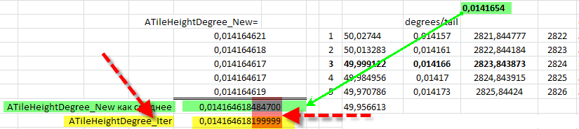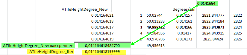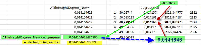 Но у нас в выделенной области 5 тайлов в высоту, и лучший результат будет если для каждого ряда тайлов определится своя ATileHeightDegree_New, а конечный результат как среднее арифметическое этих ATileHeightDegree_New.