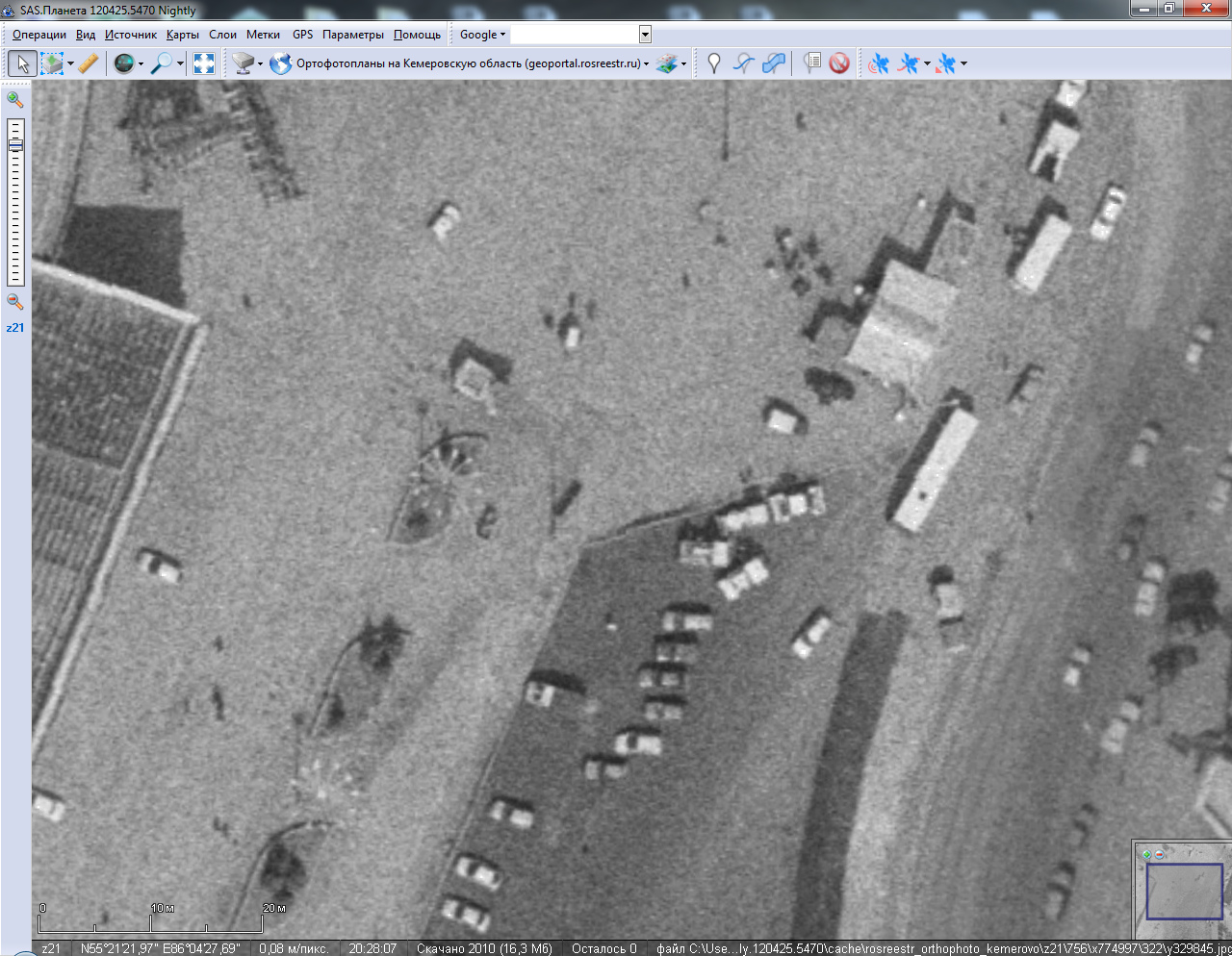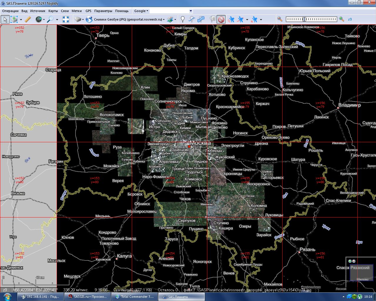 Сварганил на основе rosreestr_cadastr.zmp из плюсового репозитария zmp для просмотра снимков. Вырисовалась проблема такая же что и на геопортале роскосмоса, тайлы с краю png, внутри jpg. png сохраняется в jpg, естественно, с потерей прозрачности. Сделал так для того чтобы можно было смотреть края и серединки одновременно. Вопрос разработчикам, а можно чтобы программа из одного zmp сохраняла несколько разных типов файлов и также их показывала? Можно конечно jpg в png сохранять, но размер одного тайла раз в 10, если не больше, увеличивается.