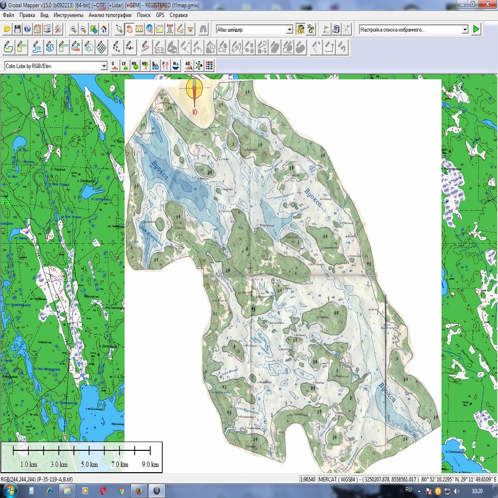 Ну и без сетки. GM, загрузка что сканировали, подложка с космоснимка ( грузится в самом GM). Что сканировали наложили на космо с полупрозрачностью и подгоняйте. Можно и по трекам, и точкам если надо.
