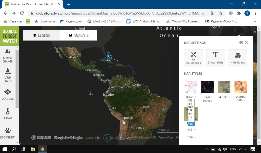 Доброго времени суток! Вчера в SAS4Android на подгрузке обнаружил, что на пропавшем Planet.com по ходу начали заливаться пустые прозрачные тайлы... Сегодня добрался до globalforestwatch.org - угу, реанимировали, и даже оба старых апи работают из http://www.sasgis.org/forum/viewtopic.php?f=2&t=168&start=1640#p49404, но как выпендрились, зануды... такой источник испортили... А по остальному шарику - только рельеф от Мapbox.