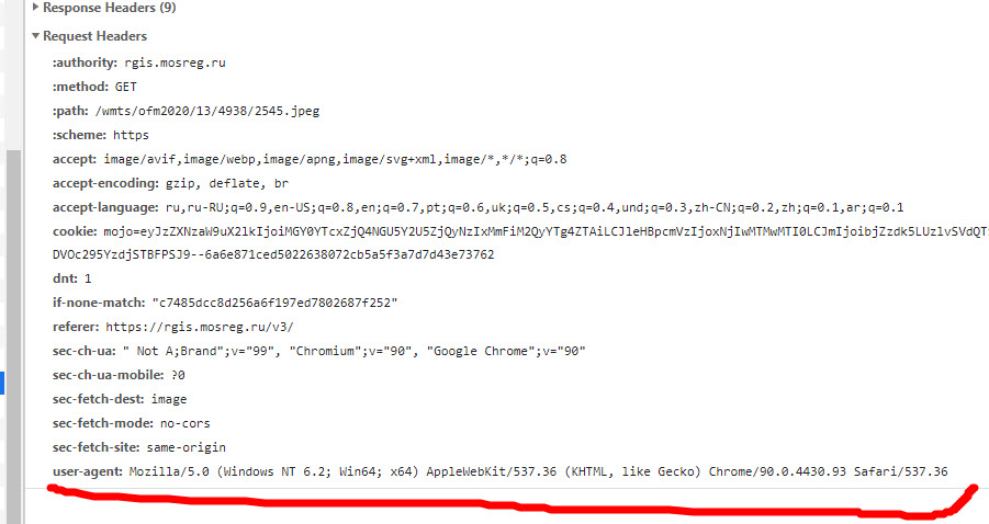 1. сначала запускаем RGIS карту в веб браузере, через средства разработчика браузера копируем у тайла всю строчку cookie в Запросе включая само слово "cookie:"