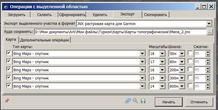 Параметры для экспорта JNX из Sas.Планет.