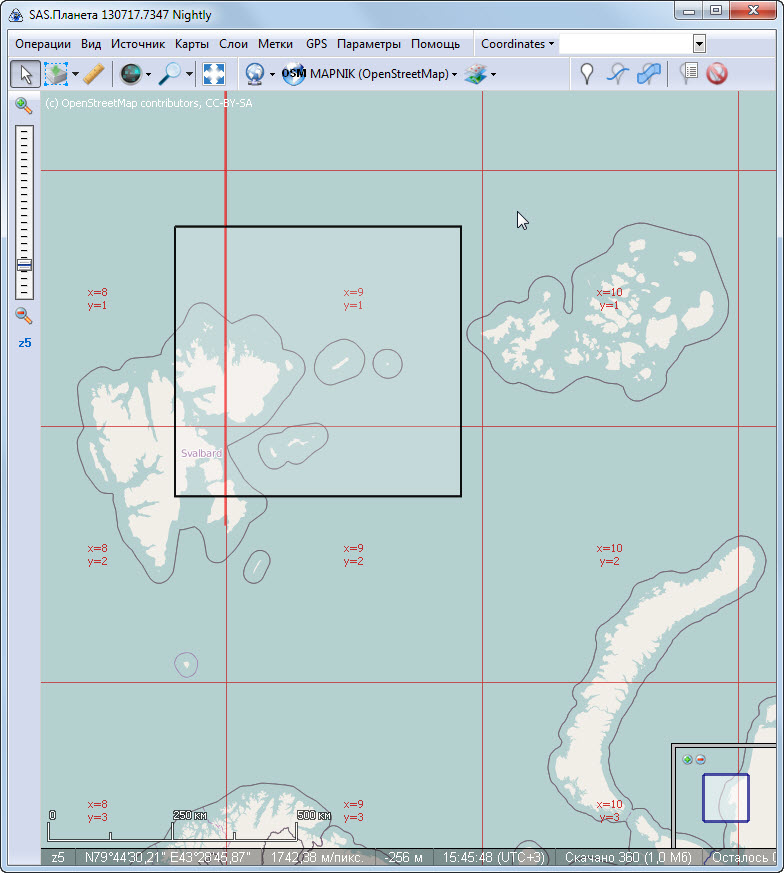 TILERBOTTOM=256Нажмите кнопку goto (с лупой), введите тайловые координаты, которые я написал (зум тот, при котором scaleindex=3), должно появиться что-то.
