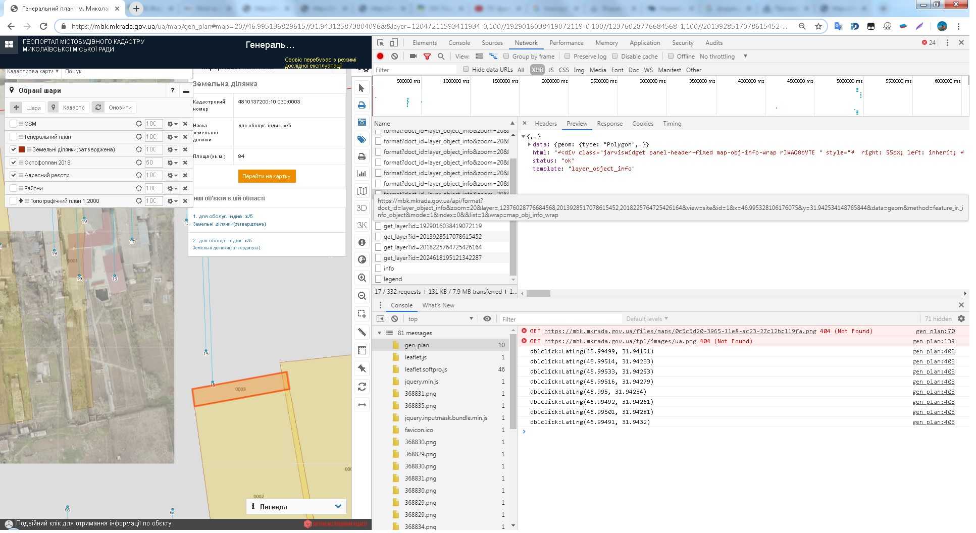 При двой ном клаце по участку у нас отправляеться "gen_plan:403 dblclick:LatLng(46.99491, 31.9432)" и срабатьівает javaScript
