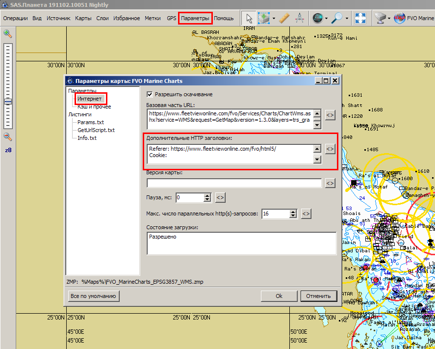 Не закрывая браузер, перейдите в SASPlanet с уже открытой картой FVO Maps;