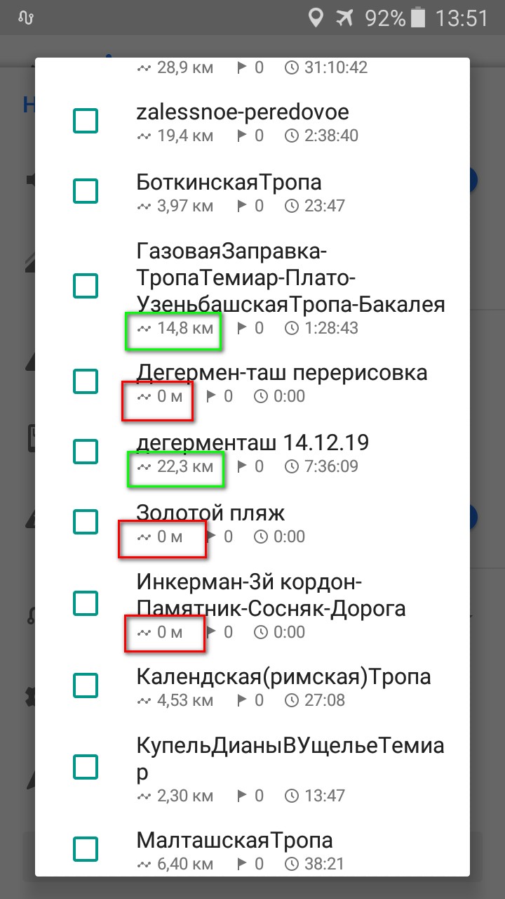 И ещё о путях, созданных в программе. Все треки, скачанные готовыми, в Османде показывают километраж под названием трека, в свойствах. А созданные в программе показывают 0 км (когда он открыт в навигаторе, километраж есть!). Но это так, лёгкое недоумение -- может, его надо реально пройти, этот созданный путь?) Тогда и в свойствах появится правильный километраж?