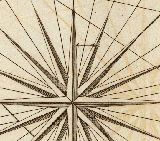 И кстати, неясно что значат некоторые обозначения на карте. Вот например стрелка влево прямиком на розе - что это? Течение? Ветер? Направление на ближайший бордель?