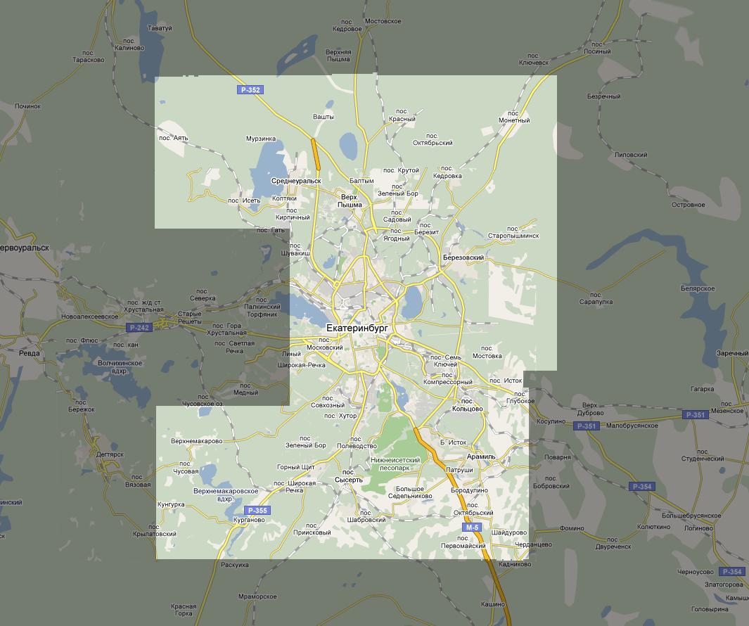 Примечание: вся область что есть на Virtual Earth SAT в z18 в окрестностях Екатеринбурга