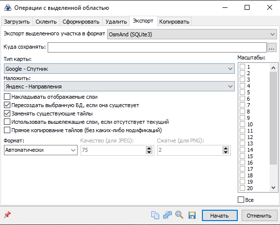 Хотелось бы использовать данную карту в OSMAnd (SQLite3) как карту наложения. Нужны только накладываемые на различные карты (google, яндекс и т.п) полигоны отмеченные галочками (см. приложенный скрин)