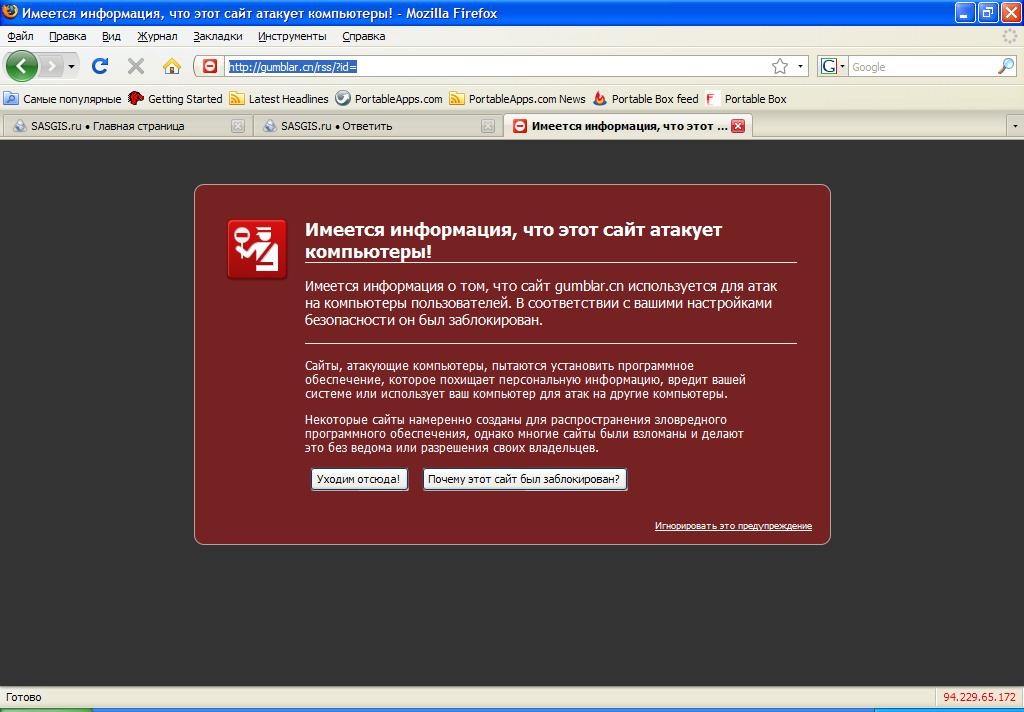 P.S. Я пользуюсь Mozilla Firefox. Так вот, еще вчера при открытии сайта _http://gumblar.cn/rss/?id= выдавал такое окошко: