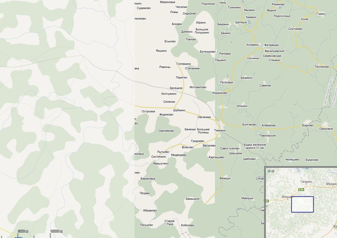 И так - по всему региону. Я уж молчу про тысячи мелких поселков\деревенек, которые раньше были отмечены хотя бы точкой с названием (в старых версиях того же гибрида) - а сейчас на этом месте просто чистый квадрат, хотя на спутнике-то вполне себе виден населенный пункт.