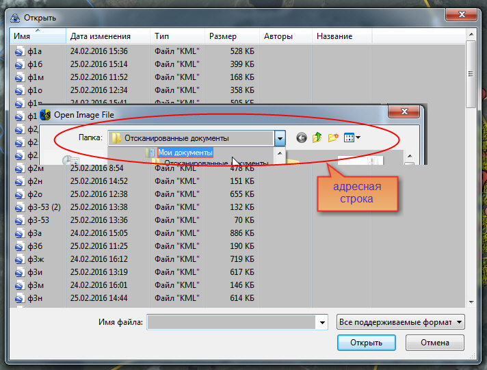 а если в паинте нажать файл-открыть? там будет адресная строка?