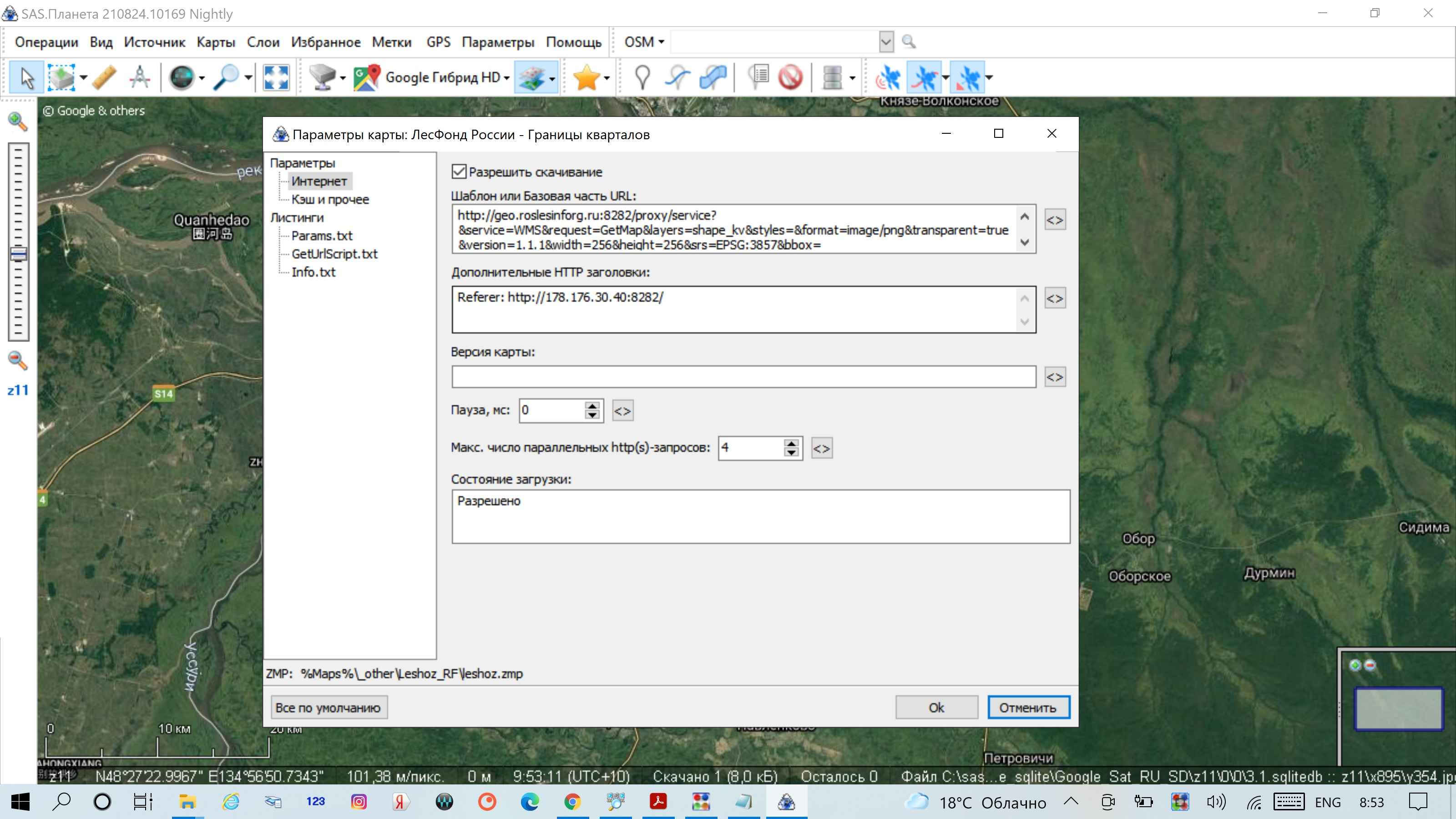 Ессно "Referer: http://178.176.30.40:8282" надо вставить в поле "Дополнительные HTTP заголовки", во вкладке "Параметры - Параметры слоя - Интернет"".
