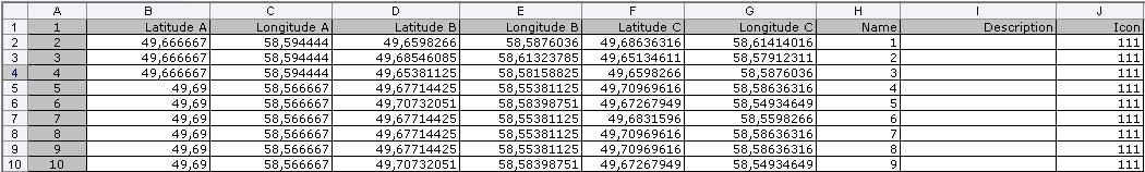 во вложении скиншот экселя. есть ли возможность по координатам трех точек построить полигоны в САС?