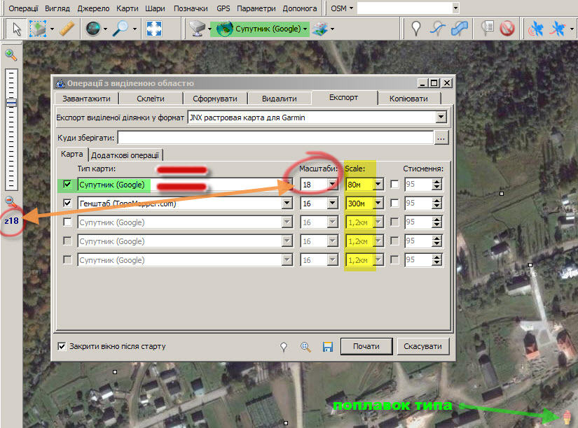 4. Выбираем, содержимое какой карты (в данном случае слоя!) и на каких зумах будем копировать.