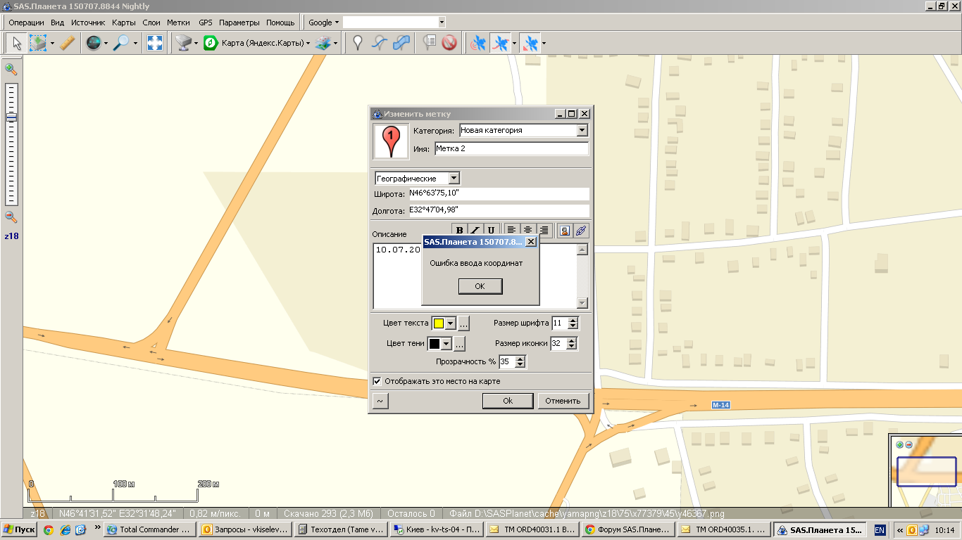 Как найти в SAS.Планета пот таким координатам 46.637510 32.470498 куда эти координаты в бивать?