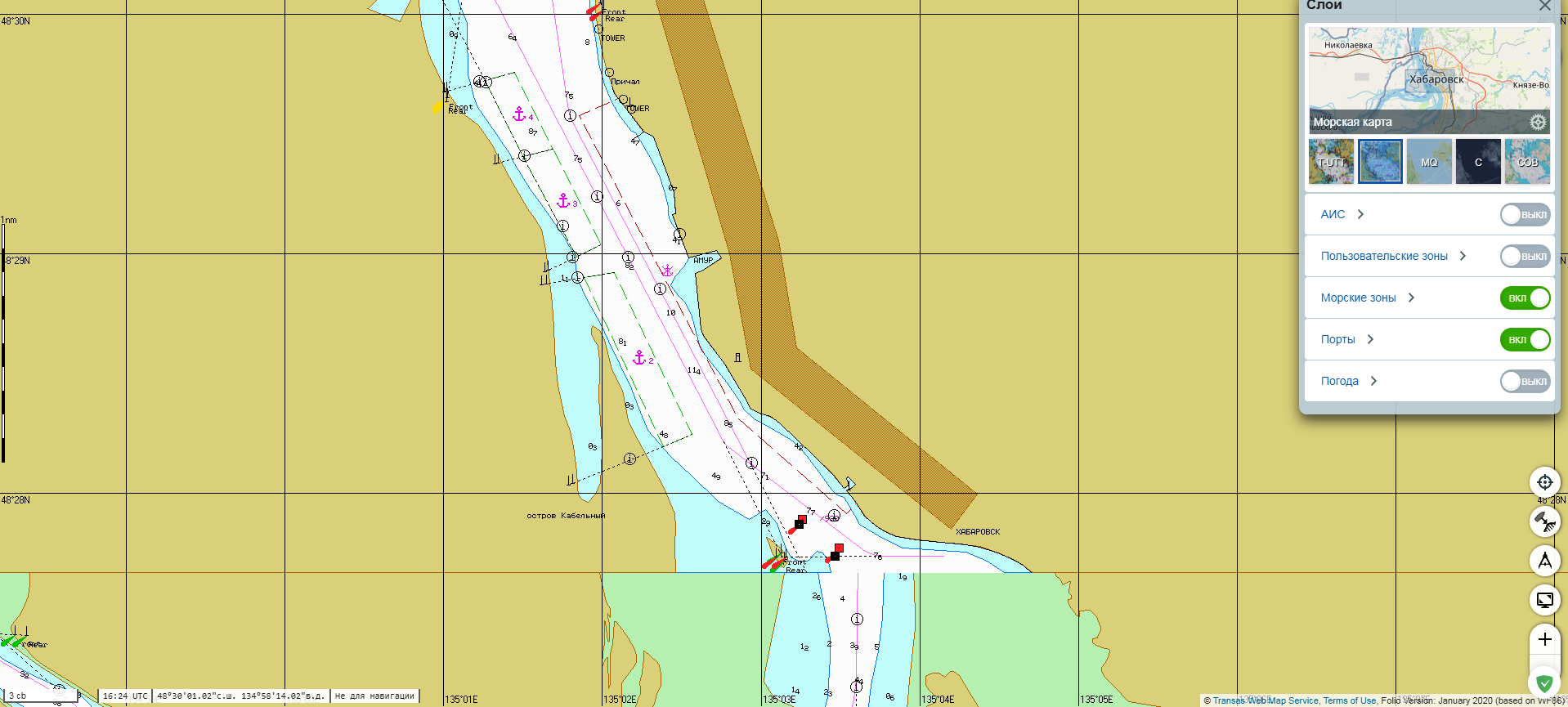Доброго времени суток! Ага, подвоха c-map.com/chartexplorer я и не заметил... У них же по умолчанию стоит глубина в ФУТАХ. Вчерашний архивчик снес, добавил в набор карту глубин "maxnp_int1_hrb" в МЕТРАХ.