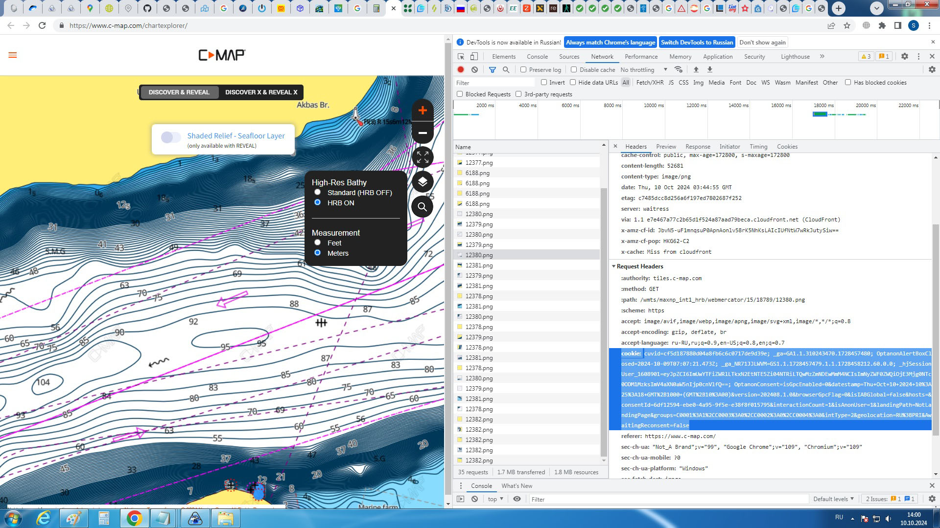 Как вытащить куки для С-map.com: