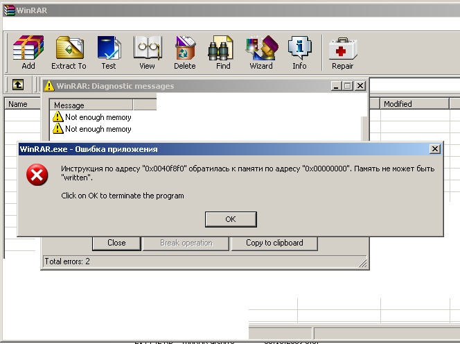...а вот так выглядит WinRAR последней версии при попытке сделать то же самое: