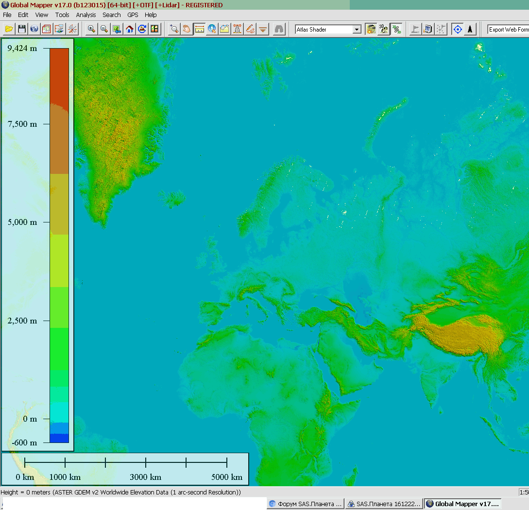 Если приглядеться к картинке в моём предыдущем комменте, видно, что это ASTER GDEMv2 непосредственно онлайновый, т.е. полученный вот только что с тырнету средствами GM.aleksjr писал(а):...Чтобы загрузить файлы высот надо иметь их на своём компе. Можно SRTM. Можно ASTER GDEMv2 выложенную на торенте сас.Можно jaxa смотри лист5 этой темы.