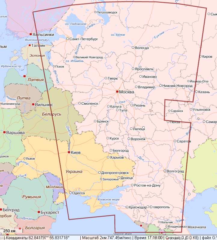 ..............Растровая карта с наложением границ губерний.......................В программе САС.Планета с границами областей