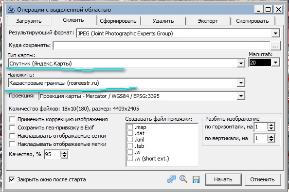 Dmitry123 писал(а):Приветствую! Подскажите как склеть яндекс карту и слои - росреестр - кадастровые границы. Загружаю карту в формате 20. Потом перехожу на склеить также ставлю 20 и он сохраняет только карту без слоя, но при этом, если я не меняю масштаб с 17 (базовый) на 20, тогда склеивает. Ошибка?