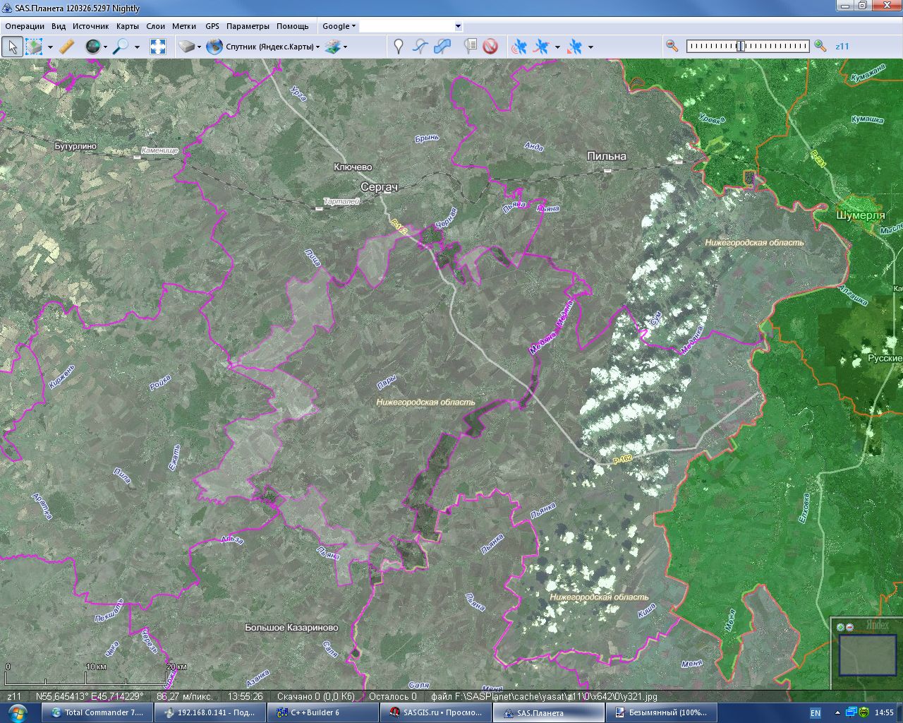 А вот результат визуализации неутешительный. И ладно бы мульти полигоны с дырками (надо сделать и их парсинг, пусть каждый полигон из мульти создается в виде отдельного полигона sas. и даже внутренние контуры можно отдельно сделать, это довольно просто) - это не беда. А вот Границы соседних районов могут несовпадать настолько... :o как будто проекта единого нет, а каждый свои границы рисует как хочет. Завтра выложу обзорные фото на тему нестыковок и искажений.