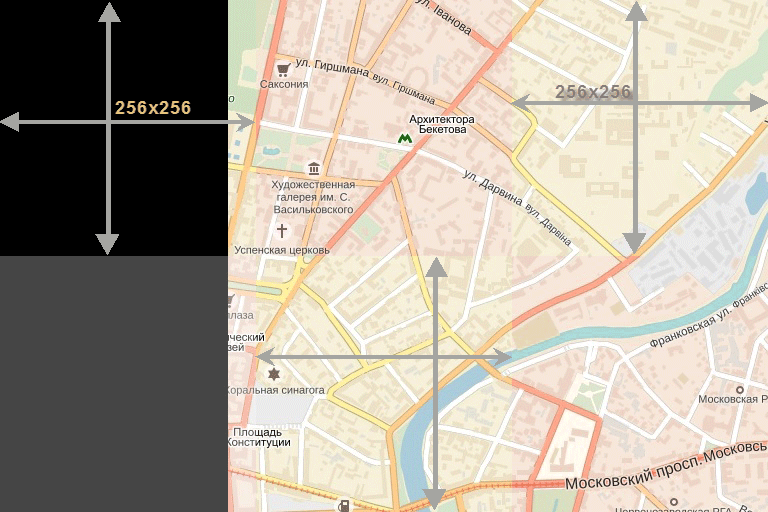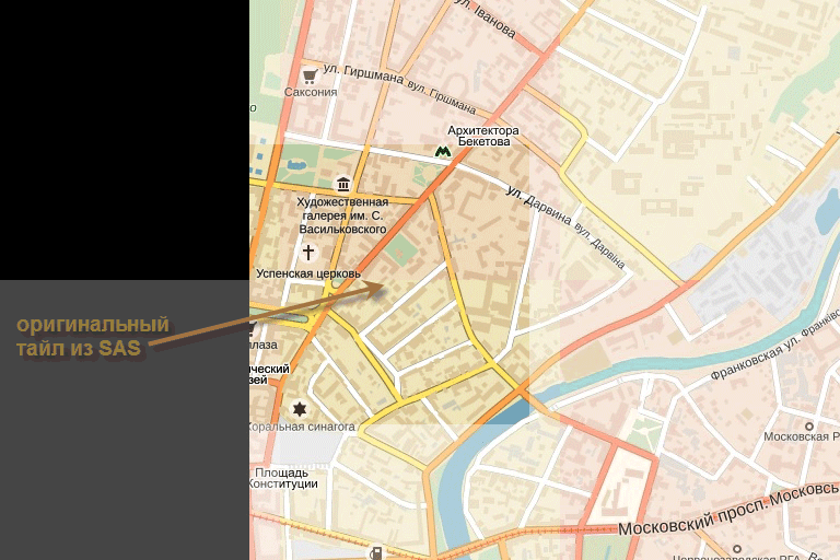 Оригинальный тайл (меркатор) на этом фрагменте , в фотошопе режим наложения тайла - "умножение".