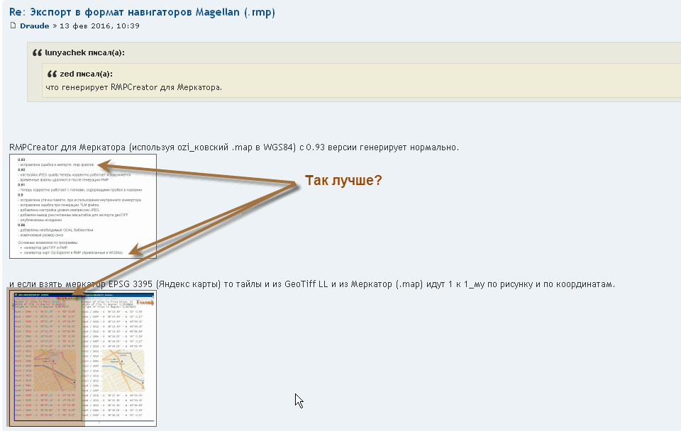3. Различия вылазят по причине что координаты в rmp задаются для блока тайлов и для блока имеется среднее разрешение , которое зависит от географической широты. Если автор RMPCreator_а "не решил проблему сам" а вы в свое время ему не подсказали , то заганяйте карты в RMPCreator "потоньше", количеством побольше. Да вы это прекрасно и без меня знаете.