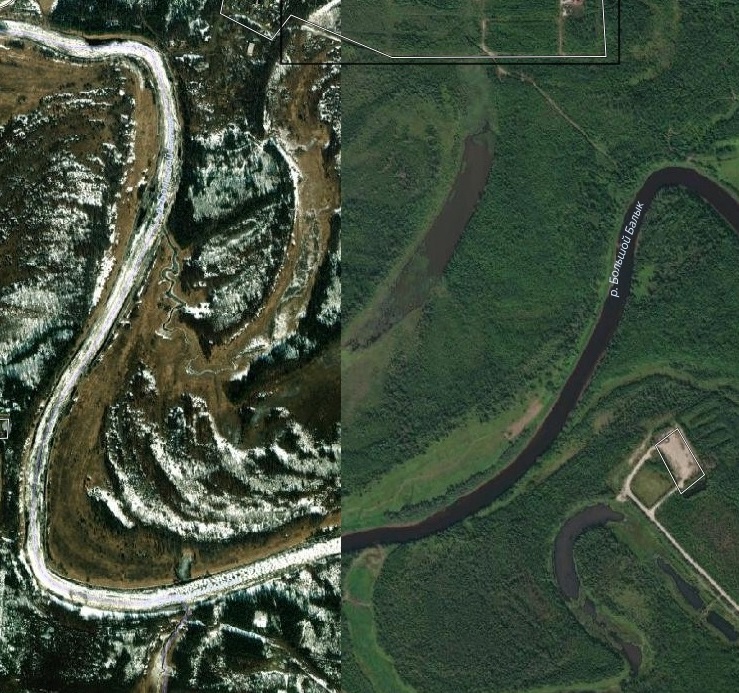 ...И на вашем скрине - тот фрагмент снимка, который вы считаете зимним, вообще-то от 23.04.2021, это они заплатку поверх облаков снимка от 30.05.2021 наложили. Справа - снимок от 06.07.2021..